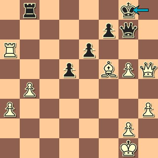 25. … Vxb6? Až tenhle dávno plánovaný efektní tah – dobrání chybějící figury (nelze 26. Dxb6 Dxg2 mat) – je špatný! Kouzlo 25. … Vg8!! všechno drželo! 26. Vfe1! Dg6 Pořád ještě držím bílého za g2, jenže … 27. Vxc6!!