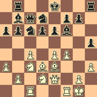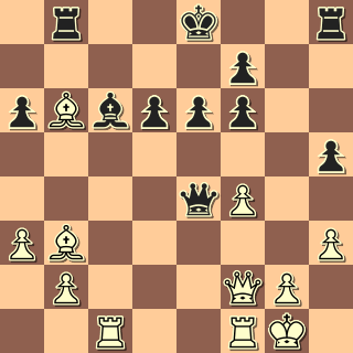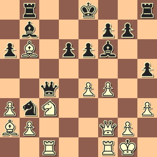 V zahájení jsem nebyl zcela přesný, postavil jsem jakousi ježkovitou strukturu a cítil se stísněně, takže jsem přivítal možnost trochu figury rozehrát. Naštěstí soupeř podobně jako já včera lezl do kisny, měl už jen 18 minut (po čtyřicátém tahu se nepřidává): 17. … Jd4!? Prosím, berte poznámky s rezervou, tahle pasáž je na delší analýzu. 18. Df2 Jc5 19. Sb1 Jcb3 20. Jxb3 Jxb3
