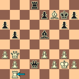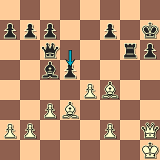 Černá má kvalitu, bílý král nemá tahy, ale i bílí střelci jsou silní. Kdo se prostřílí na soupeře dřív? 28. f3! To je nutnost, ale po 28. … f5! by se diagonála pro černou dámu uvolnila, černý stojí na výhru. Jenže v pozici je svůdnost: 28. … Vg1+?? 29. Dxg1 Sxg1 30. exd5+ Dg6 31. Sxg6 fxg6 a Verunka s figurou navíc a volným déčkem snadno zvítězila. 1:0