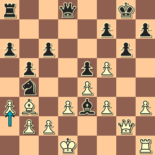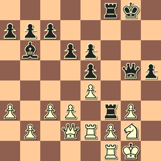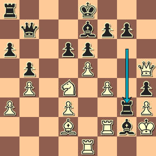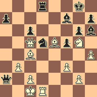 To si zaslouží diagram. Střelce brát nelze. 26. Dxd2 Sxd2+ 27. Kxd2 Dxb2+ atd. 0:1