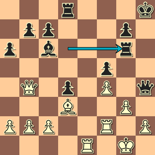 Znalci jistě poznají, o kterou variantu jde. Mám pěšce a aktivitu, soupeřova dáma je v ofsajdu. 1. De7!? Jxe7?? Šlo jak 1. … Sxg5+ 2. Dxg5, tak 1. … Vf8. 2. Vxd8+ Sf8 3. Sxf7 mat.