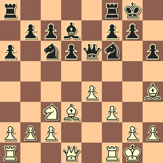 Vojta tu soupeři nastražil léčku: 13. Jd5! Jxd5?? 14. exd5 Vidle! 14. … De3+ Nešlo 14. … Dxd5?? 15. Sh7+!. 15. Sf2 a černý ztrácí figuru.