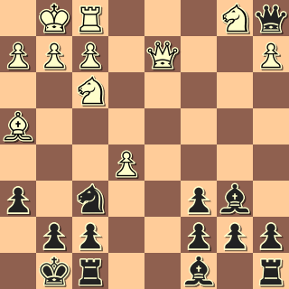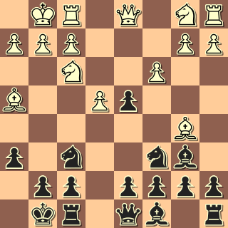 Dále se pokračovalo tahy 9.Sxc6 dxc6 10.e5 dxc3 11.Dxd8 cxb2 12.Dd2. Nešlo braní věže se šachem 12. Dxf8+pro 12. … Kxf8 13. Jc3 bxa1D 14. Vxa1 Jd5, kdy má černý dva pěšce víc.