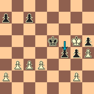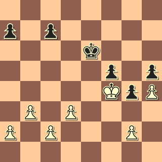 Vyhrát tohle by za bílého nemělo být velké umění. Stačí šlapat tam, kde je převaha, tedy na dámském křídle; a když tam černý král odejde hasit, vybere bílý král křídlo královské. Bílý si vybral riskantnější 1. Kg5, no prosím, je jenom třeba počítat, po 1. … Ke5 pořád vyhrává 2. Kxh5 Kf4 3. Kg6 atd. Přišlo ale 2. c3?? a po f4 je vše naopak!