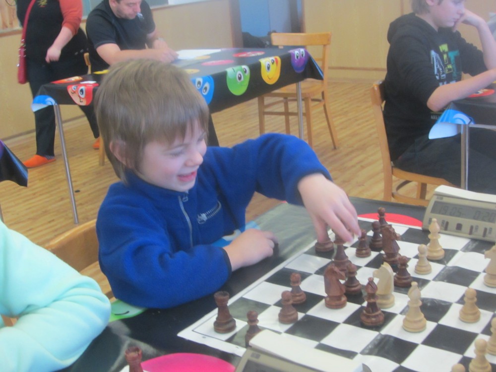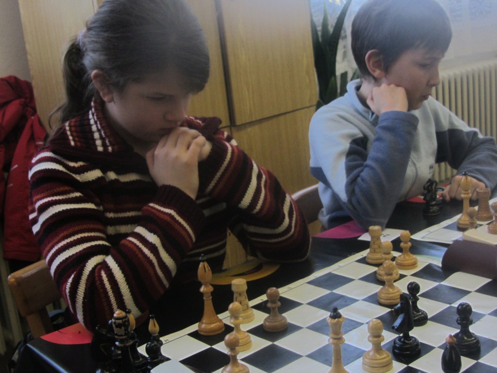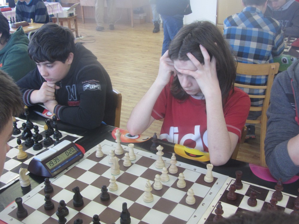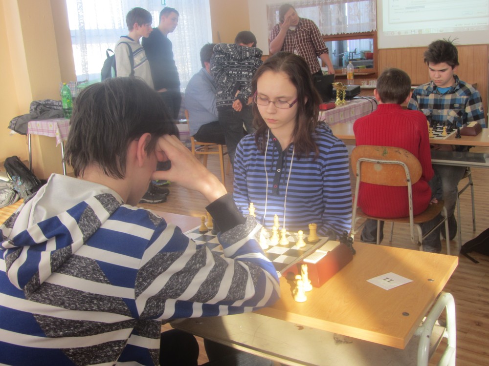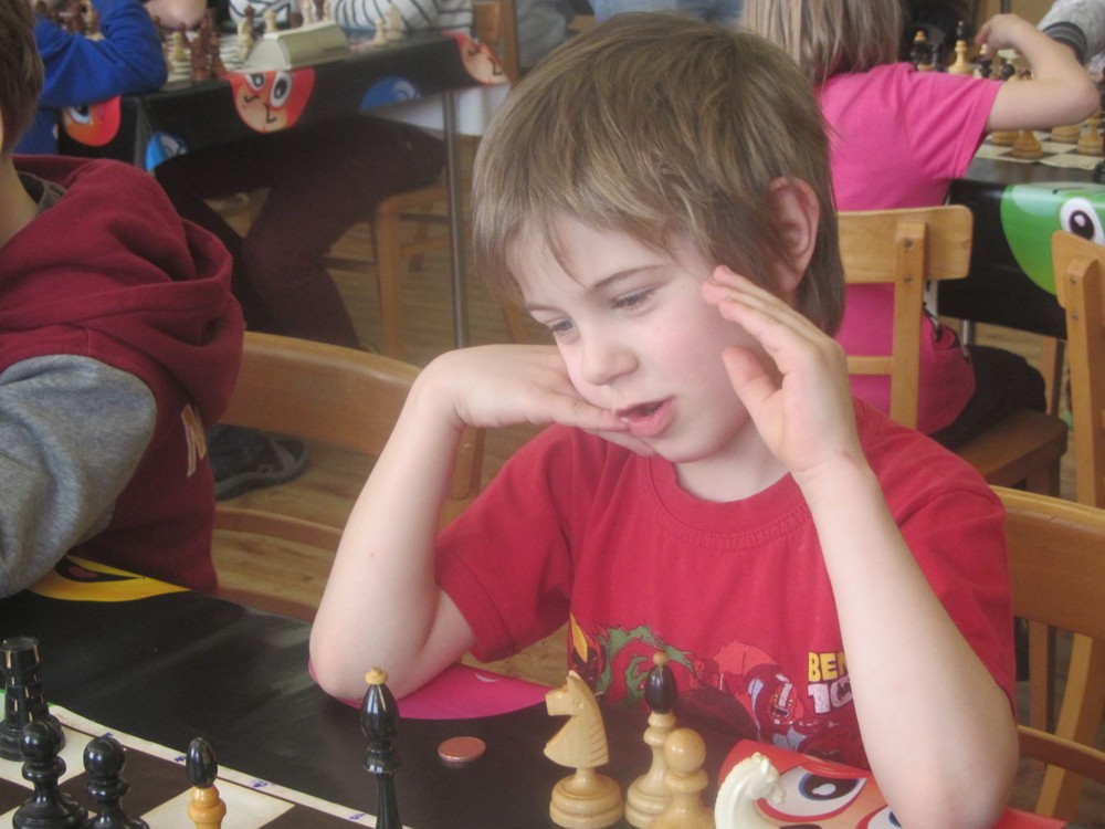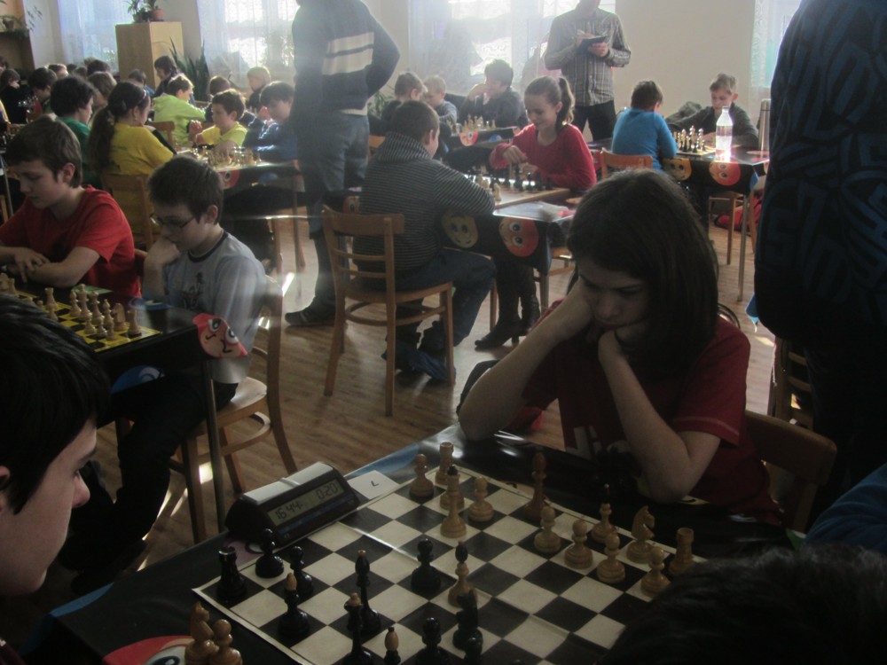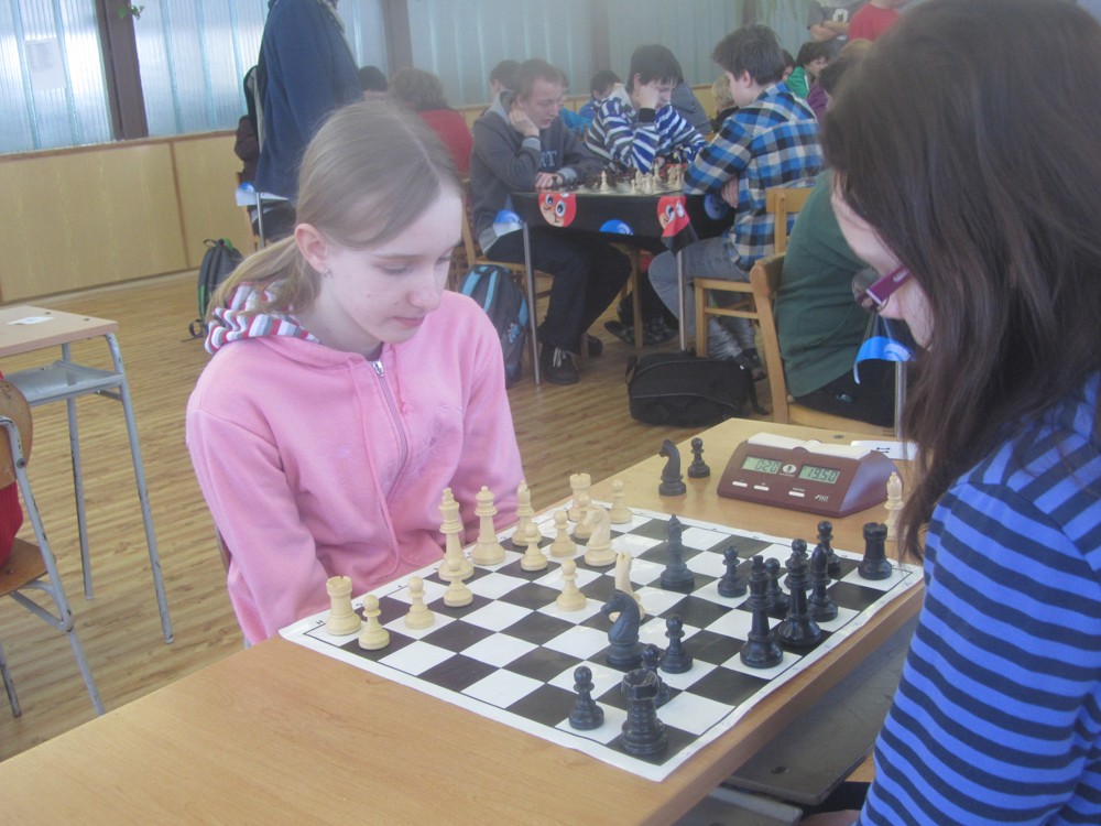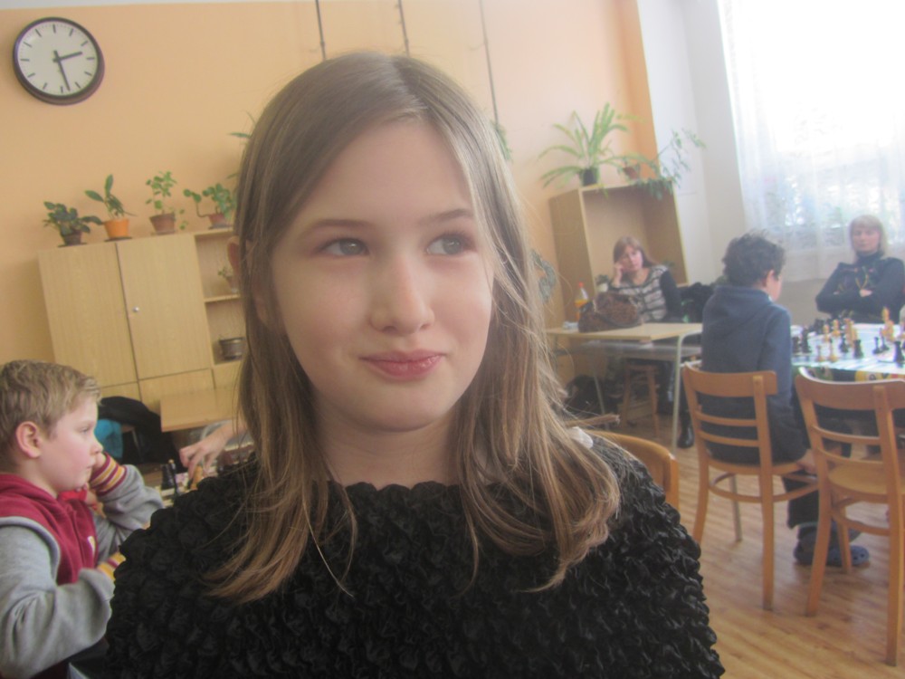 Natka Hrůšová se po dlouhé době dostala s námi na turnaj a poprvé okusila královskou kategorii šestnáctek (kde je dívek hodně málo) – a zanechala obvyklý dojem: slušně rozehrává partie, strategicky pozicím rozumí (sledoval jsem její partii se spolužačkou Veronikou, dlouho zcela vyrovnaný boj), ale nepřitlačí na pilu a v poslední chvíli chybuje, takže bodů je z toho málo. Chce to cvičit taktiku a hrát. 1/6 + 1K, 25. místo, 2. dívka, 1029.