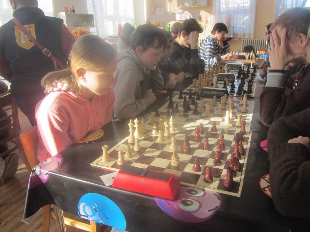 Avizovaná stovka nakonec nepadla, ale 94 hráčů (27 + 67) je v době chřipkové epidemie a zimních sportů krásná účast. My jsme k tomu přispěli jedenáctkou našich (4 + 7), k úplné idyle mi chyběla ještě Katka Dudlová a Matěj Kobr. Martin pobral šest lidí do auta, Seibertovi si udělali rodinný výlet, já vzal svoje děti vlakem (tradiční šachový vlak, totiž osobáček ze Svitav s desítkami mladých šachistů, by si skoro zasloužil zvěčnit v nějakém krátkém filmu). Bylo krásně, umrzlo, azur; metelice přišla až v neděli.