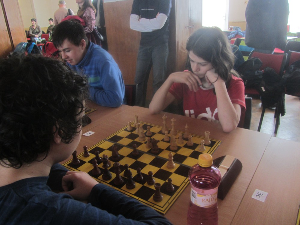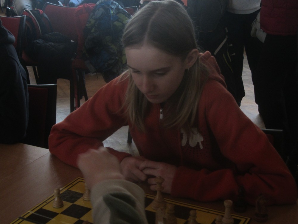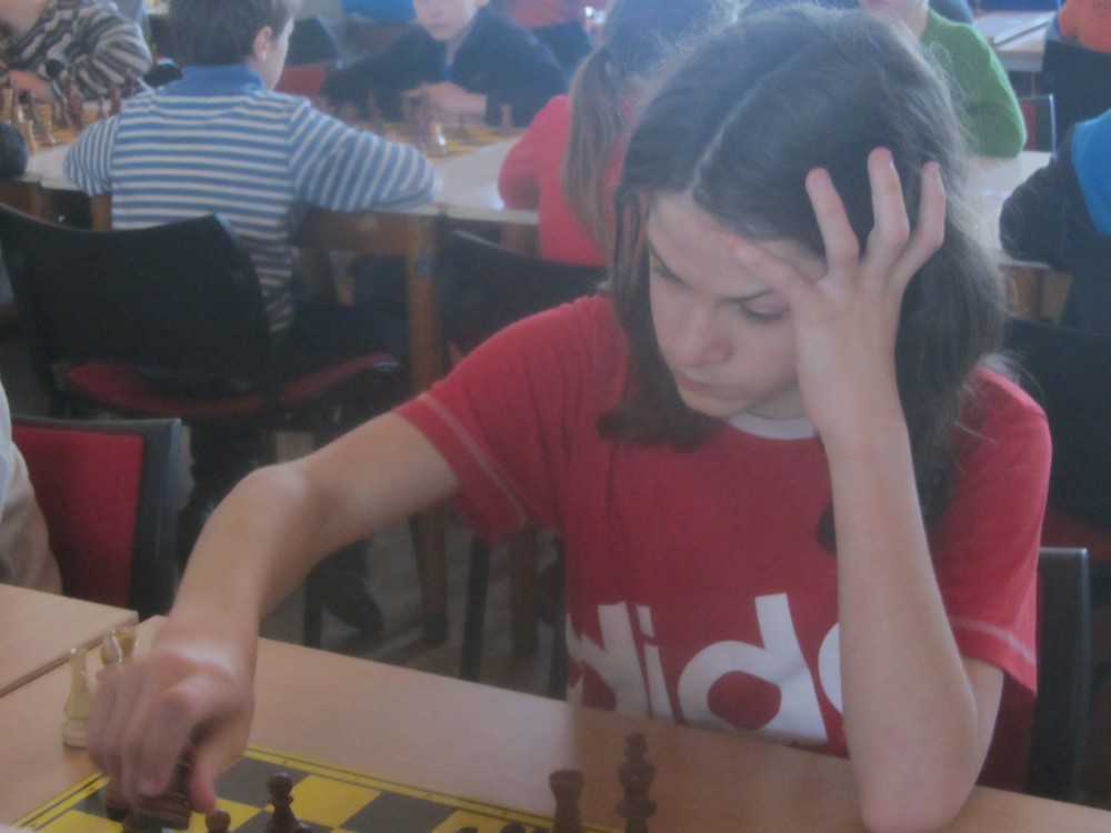 Kateřina Dudlová hrála naopak celkem vepředu a vypadalo to na obvyklé pěkné umístění, ale v šestém kole prohrála se Soňou Leksovou, což by se jí stávat nemělo, a v posledním kole dovršila pohromu nulou s Křivským. Dvě partie a je po všem: kolaps, nezdar, ještěže o nic moc nešlo. 3,5/7, 22. místo, 4. dívka, 1166.