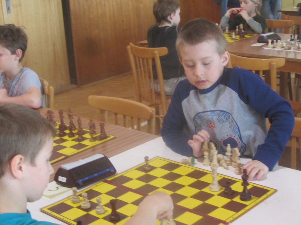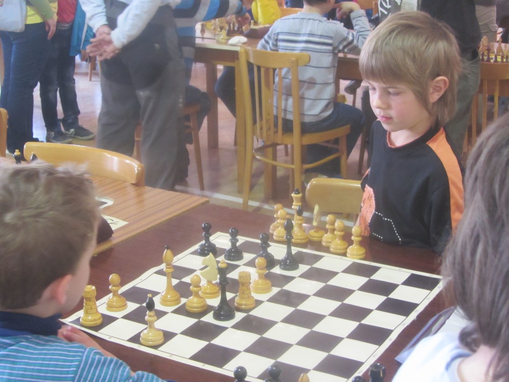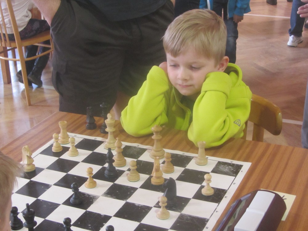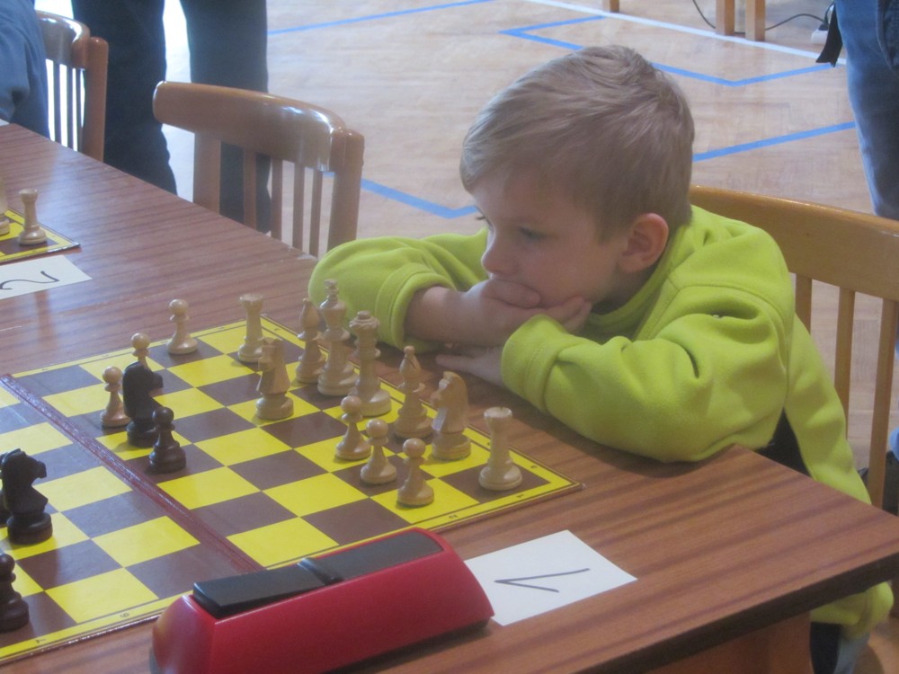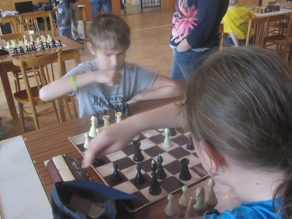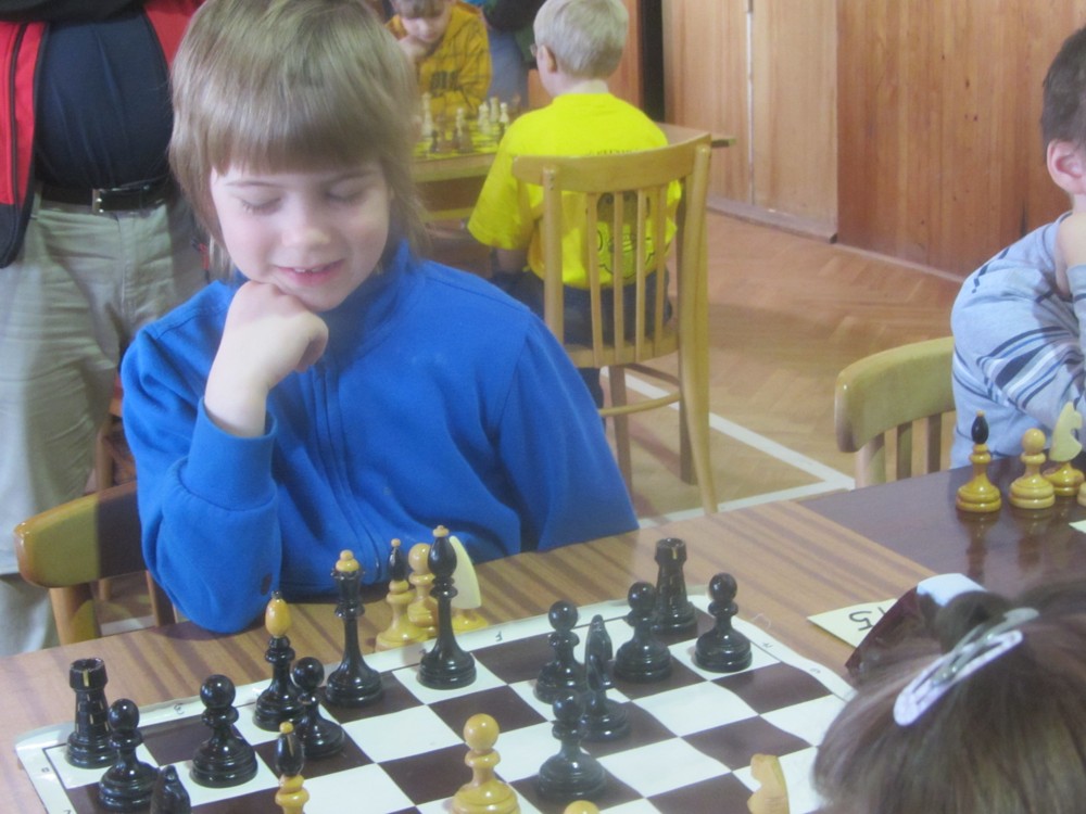 Markéta Holásková rozehrávala některé partie velmi pěkně (např. s Adamem Švandou se držela dlouho), ale pak se otáčely v její neprospěch a z útlumu už se nevymanila. Měla i trochu smůlu: v jedné partii soupeř postavil Sd6, De5, pronikl na h2 a matil. Markétka v další partii postavila baterii Sd6, De5, pronikla na h2 … a nic kromě šachu tam nebylo. 🙂 1/6 + 1K, 32. místo, 6. dívka.