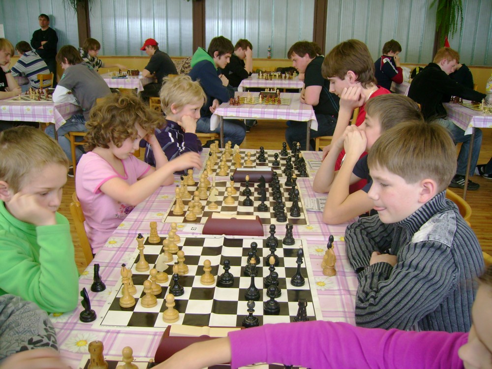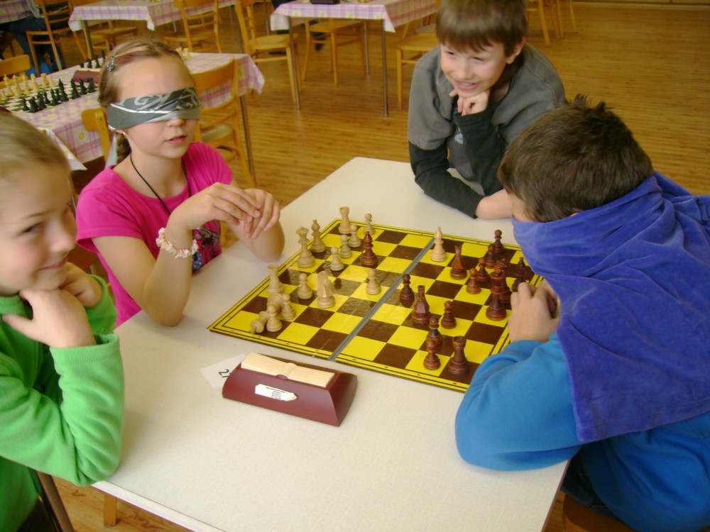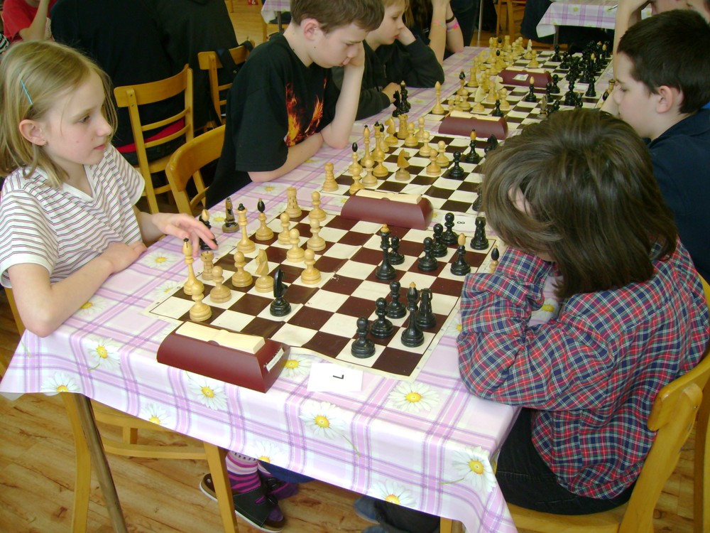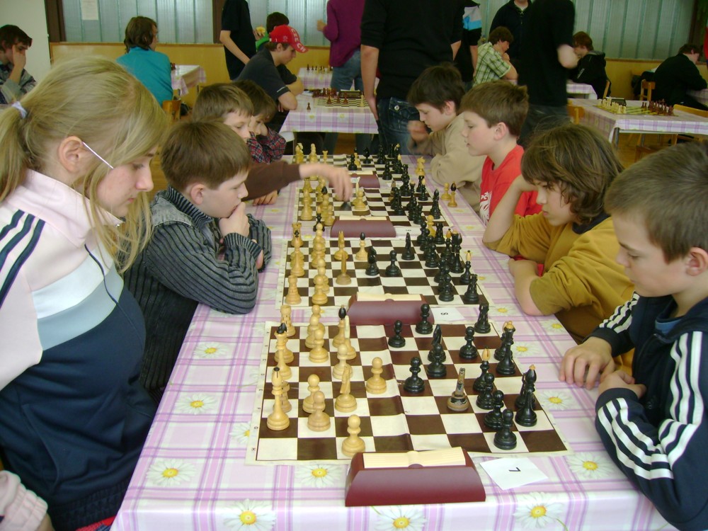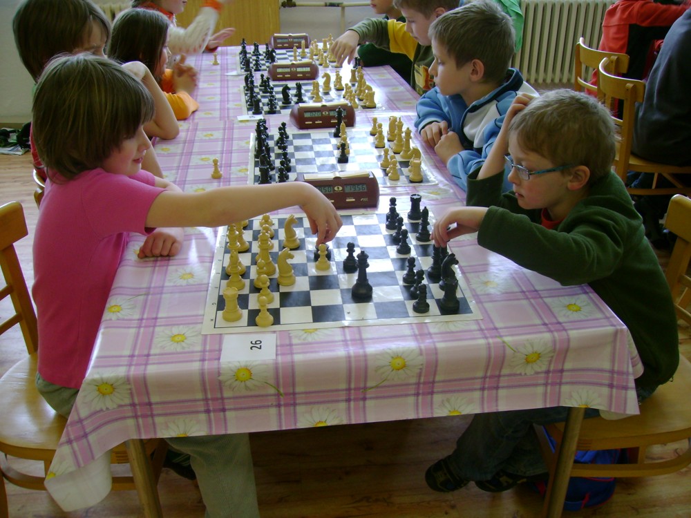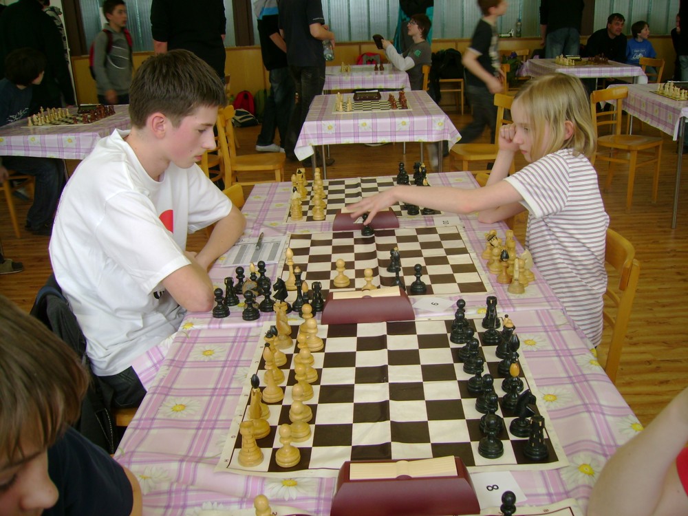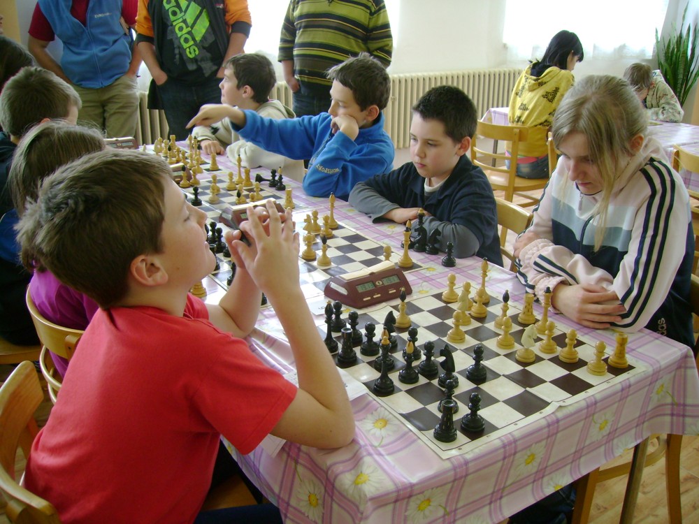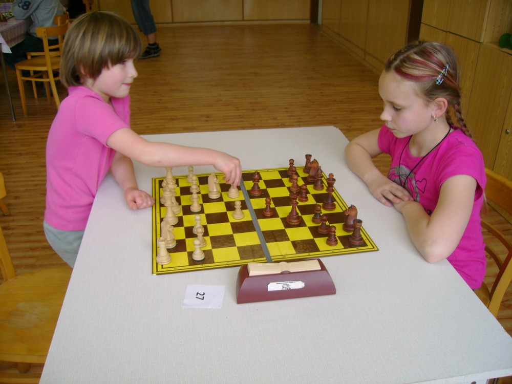Kateřina Šmajzrová zas tak často nehraje; porážela slabší, půlila s trojkama; prohru si bohužel schovala do posledního kola na druhou šachovnici: o dvě hlavy menší Lukáš Pavlíček ukázal, že obětní Grecovu variantu má narozdíl od Katky nastudovanou. 4,5/7, 10. místo, 2. mezi dívkami, nejlepší z našich, ještě aby ne :-). Vít Holásek hrál svůj solidní standard, moc však nestíhal hrací tempo (ve třetím kole přehrál Dvořáka, ale nebyl schopen zrychlit a spadnul). 4,5/7, 13. místo, dejme tomu. Veronika Šmajzrová po slabším výsledku ze Třebové dala vzpomenout na Orlickou šachovnici. Dařilo se jí, bojovala proti mnohem větším klukům, blýskla se výhrou nad Lukášem Paukertem. 4,5/7, 14. místo, 3. mezi dívkami, v tomto případě rozhodně úspěch! Martin Paukert už nehrál ani nepamatuju, tady se po startu 1/3 zvedl, vyhrál pak třikrát v řadě, mj. nad Monikou Ryšavou a předstihl mnoho našich zkušenějších hráčů (včetně staršího bráchy). 4/7, 18. místo. Vašek Grundman pokazil první kolo proti Marušce Vaškové, pak to bylo dobré, škoda posledního kola. 4/7, 19. místo. K šachové knížce, kterou studoval, ve vlaku, přidal další, kterou vyhrál – a nikdo z hráčů před ním po ní nesáhl! Lukáš Paukert musel po prohře s Verunkou Šmajzrovou dohánět terén ze zadních pozic. 4/7, 21. místo, na Lukáše sotva průměr. Naše čtyřbodové uzavírá Jirka Píše, i on mohl chtít po úspěchu ve Třebové (postup do finále kat. H12) víc. 4/7, 22. místo.