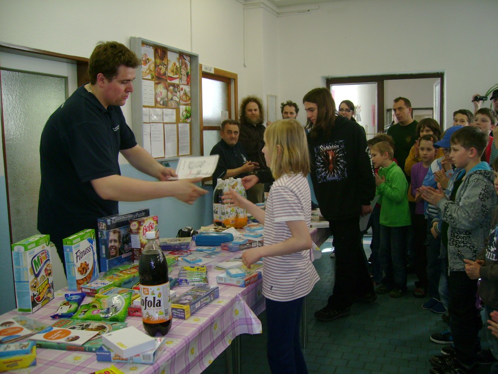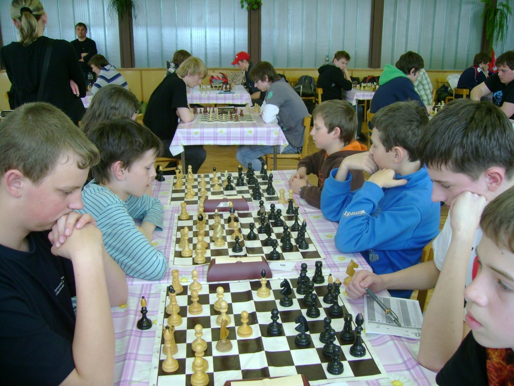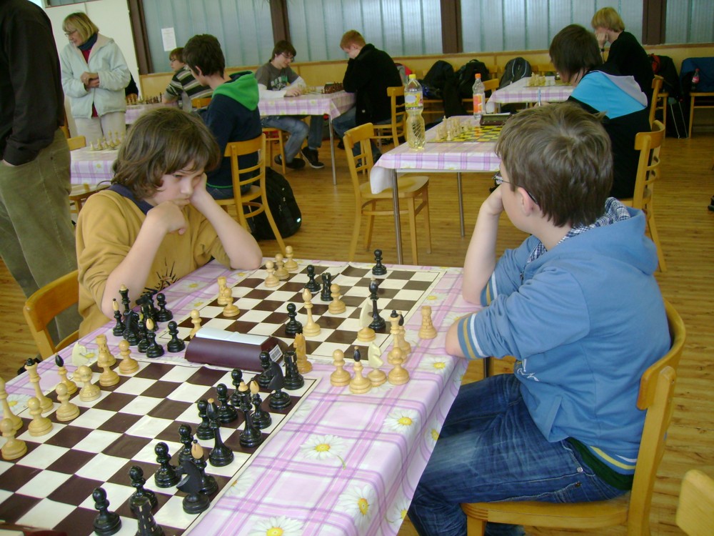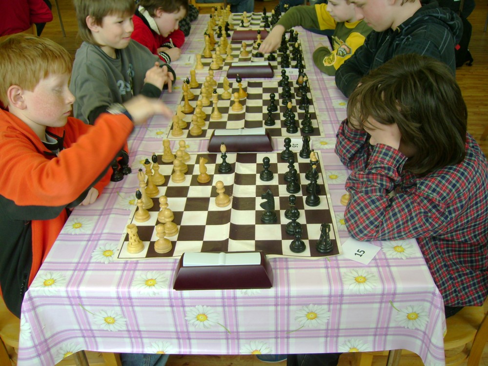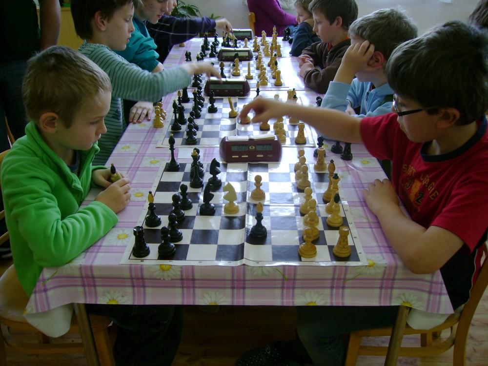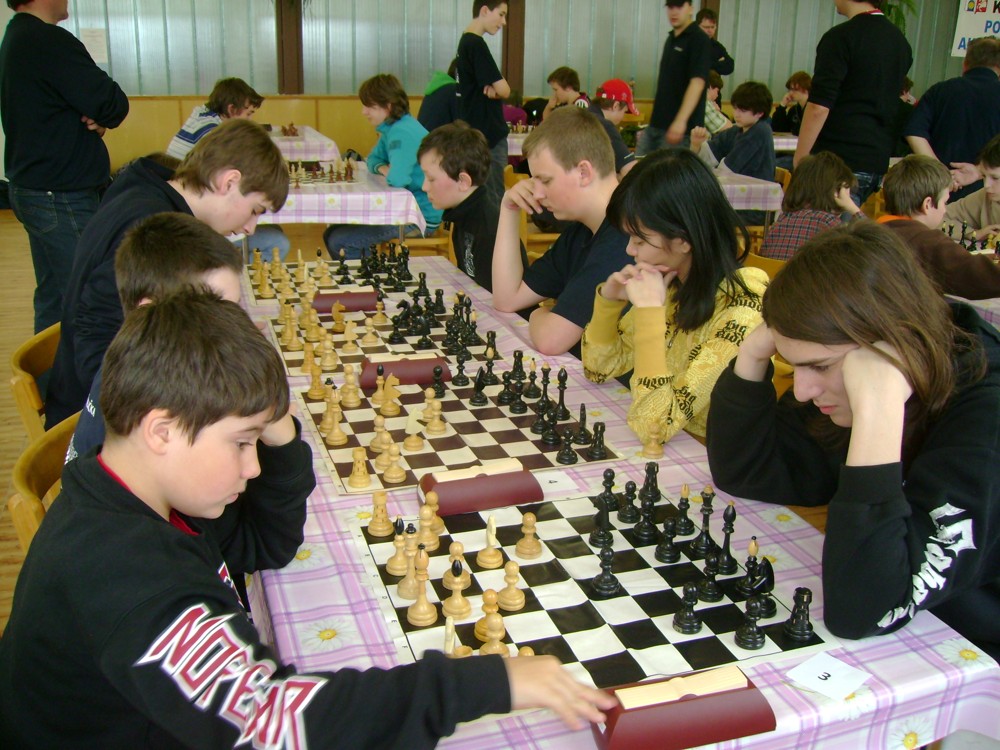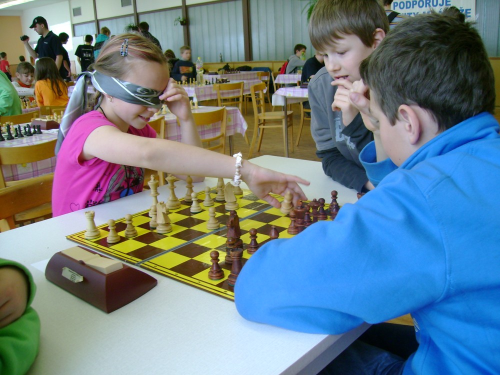 Kateřina Šmajzrová zas tak často nehraje; porážela slabší, půlila s trojkama; prohru si bohužel schovala do posledního kola na druhou šachovnici: o dvě hlavy menší Lukáš Pavlíček ukázal, že obětní Grecovu variantu má narozdíl od Katky nastudovanou. 4,5/7, 10. místo, 2. mezi dívkami, nejlepší z našich, ještě aby ne :-). Vít Holásek hrál svůj solidní standard, moc však nestíhal hrací tempo (ve třetím kole přehrál Dvořáka, ale nebyl schopen zrychlit a spadnul). 4,5/7, 13. místo, dejme tomu. Veronika Šmajzrová po slabším výsledku ze Třebové dala vzpomenout na Orlickou šachovnici. Dařilo se jí, bojovala proti mnohem větším klukům, blýskla se výhrou nad Lukášem Paukertem. 4,5/7, 14. místo, 3. mezi dívkami, v tomto případě rozhodně úspěch! Martin Paukert už nehrál ani nepamatuju, tady se po startu 1/3 zvedl, vyhrál pak třikrát v řadě, mj. nad Monikou Ryšavou a předstihl mnoho našich zkušenějších hráčů (včetně staršího bráchy). 4/7, 18. místo. Vašek Grundman pokazil první kolo proti Marušce Vaškové, pak to bylo dobré, škoda posledního kola. 4/7, 19. místo. K šachové knížce, kterou studoval, ve vlaku, přidal další, kterou vyhrál – a nikdo z hráčů před ním po ní nesáhl! Lukáš Paukert musel po prohře s Verunkou Šmajzrovou dohánět terén ze zadních pozic. 4/7, 21. místo, na Lukáše sotva průměr. Naše čtyřbodové uzavírá Jirka Píše, i on mohl chtít po úspěchu ve Třebové (postup do finále kat. H12) víc. 4/7, 22. místo.