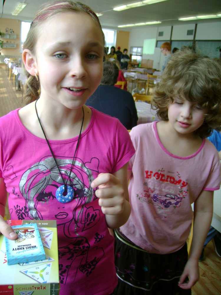 Přehled těch, co skončili ve druhé půlce, zahajuje indisponovaný Vojta Holásek, tam musím spíš ocenit, že ve svém stavu vůbec dokázal hrát šachy. Pepovi Peřinovi v posledním kole vzdal koncovku s kvalitou víc … 3/7, 32. místo. Michal Píše porazil tři hráče bez VT, ale zahrál si i se třemi trojkami! 3/7, 35. místo. Honza Kleisl zahájil rozpačitě dvěma nulami, ale pak třikrát vyhrál (vždy černými), z toho dvakrát nad 4.VT! 3/7, 36. místo. Kateřina Dudlová po třech prohrách ve 2.-4. kole hrála až vzadu, tam jí to šlo :-). 3/7, 37. místo. Michal Šmajzr udělal po prohře s Vojtou 3/4, porazil dvě čtyřky, na konci narazil na silnější hráče. Má trochu smůlu na Buchholz, na to, že hrál celkem nahoře, jeho soupeři bodovali relativně málo. 3/7, 39. místo. Veronika Holásková může zase žehrat na los, být na 50% a dostat do posledního kola Marušku Vaškovou, to je smůla. 3/7, 40. místo. Přeposlední z našich skončila Natálie Hrůšová, kterou opět obětavě doprovázela maminka, vzhledem k pěkné hře jsem čekal i víc než dva body. 2/7, 48. místo. Tradiční poslední místo má předplacené Markéta Holásková, tentokrát to ale bylo na vlásku, kromě jedné půlky za obdržený pat mohla získat i další body, jen se nevzdávat předčasně a nedávat v koncovce dámu zadarmo ;-). 0,5/7, 54. místo.