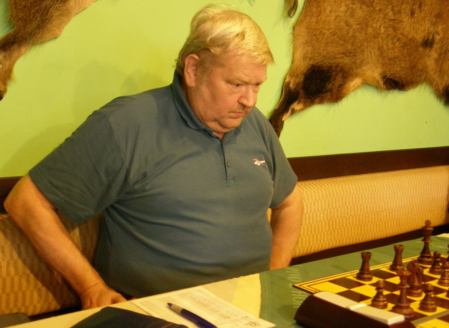 V další fázi jsme tedy s Pokynem a hosty sledovali dole tenis a občas chmurně (teda my chmurně, hosté optimisticky) odhadovali naše pramalé naděje v horní místnosti. Ztracené koncovky vzdali Honza Švub a Petr Mareš, marně se cukal Martin Pečinka. 2:3 Ve zbylých partiích Martin Šmajzr zuby nehty držel horší pozici, Vašek se pokoušel s figurou navíc vysvobodit chycenou věž a Jarda hledal zázraky v totálně zabetonované pozici. Odhad 4:4, když Vašek vyhraje a Martin udrží.