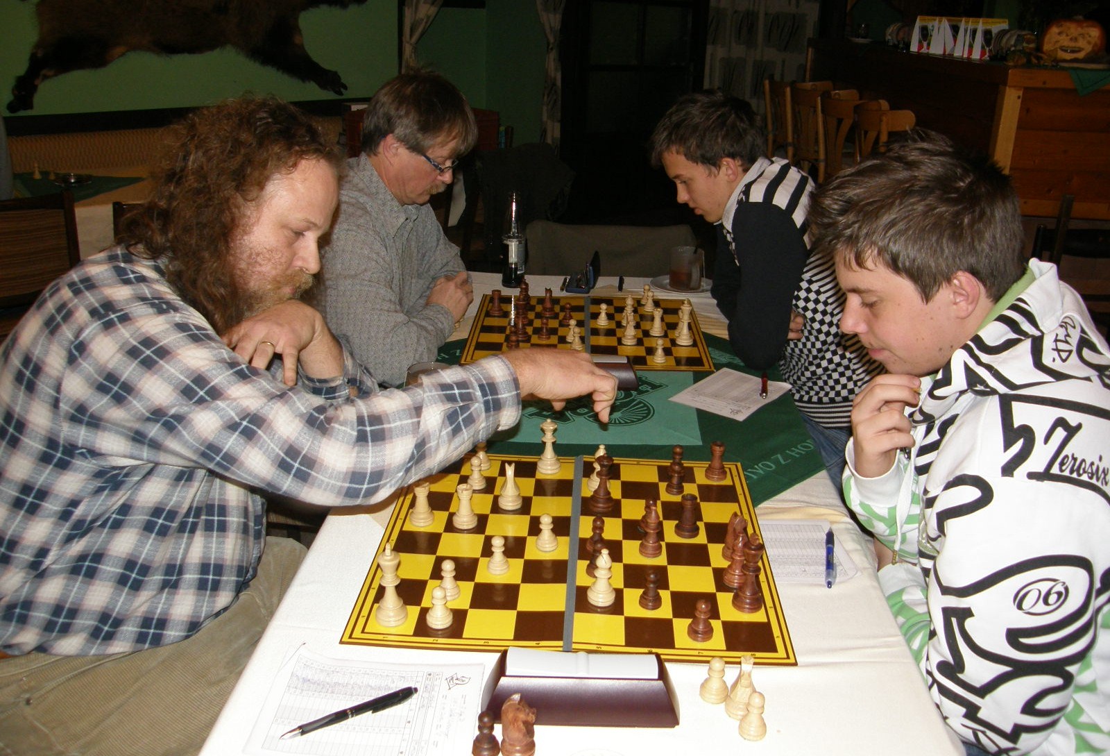 Po zahájení celkem tradiční rovina, lepší byl snad Zeiny a já, Honza Švub měl jakéhosi půlpěšce. Zajímavé bylo, že hostující mladí svorně mysleli od prvních tahů a záhy získali značné časové manko.