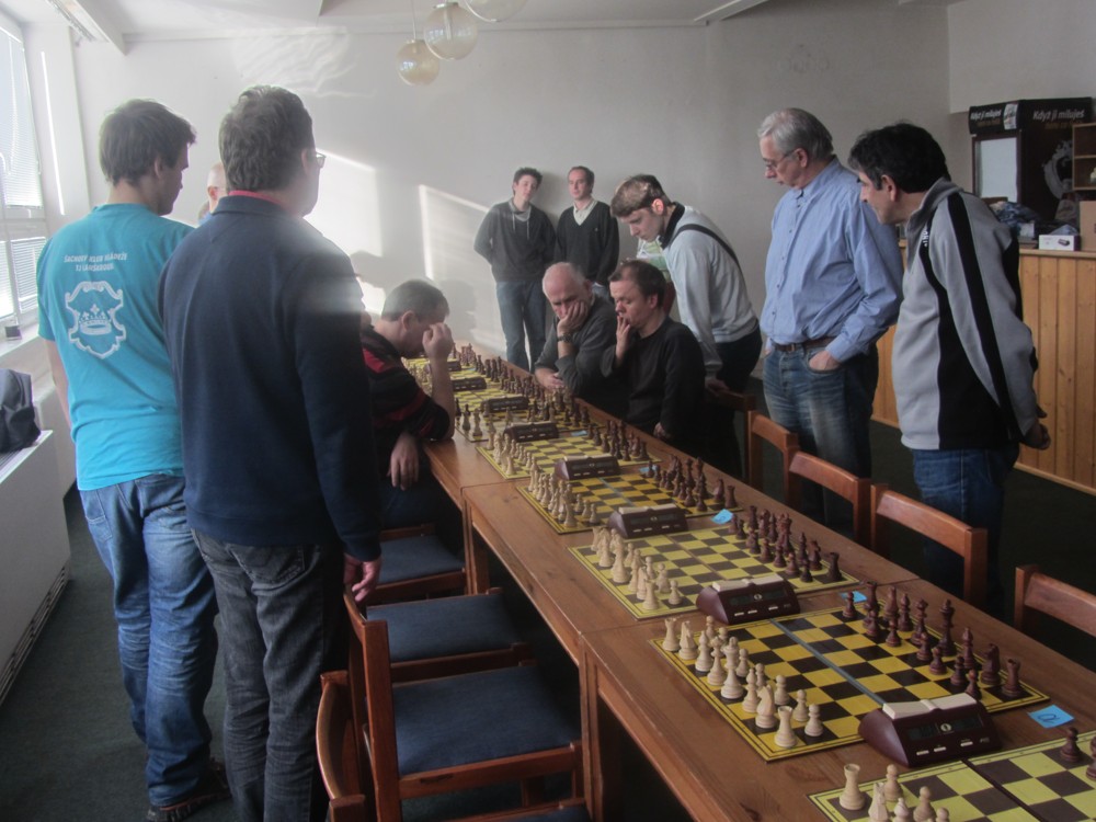 Ústecká účast slušná, hned osmnáct hráčů (včetně Martina a Vaška), to by byla pěkná blesková liga. Nejlepší z nás byl jako loni Vašek, ale kvůli přestupu cenu nedostal, šťastným výhercem jsem se stal já jen o chlup před Jardou. Velmi slušně hrál Petr Mareš, solidně si polepšil Petr Jániš, řadu našich předběhl Vojta výhrou nad Vláďou Kalouskem v posledním kole. Ostatní naši jsou buď na svém, nebo si pohoršili. Ale jen o výsledky tu nikdy nešlo, podstatné je se potkat, vidět, mluvit spolu, bilancovat.